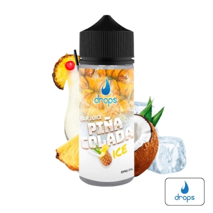 Es un aroma concentrado Longfill con sabor a piña colada con hielo, elaborado por Drops Bar. Su formato de 60ml en un bote de 120ml permite la mezcla con base y nicotina según las preferencias del usuario.