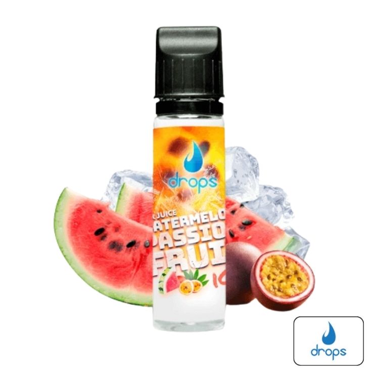 Es un aroma concentrado Longfill con sabor a sandía, fruta de la pasión y hielo, elaborado por Drops Bar. Su formato de 30ml en un bote de 60ml permite la mezcla con base y nicotina según las preferencias del usuario.