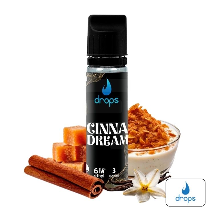 Déjate seducir por el postre líquido definitivo con Drops y su Aroma Signature Cinnadream. Esta mezcla exquisita fusiona una suave crema de vainilla con cereales crujientes, un toque de canela y un glaseado de azúcar moreno de caña, creando una experiencia de vapeo irresistible. Perfecto para los amantes de los sabores dulces y cremosos, Cinnadream te transportará a un auténtico festín de repostería en cada calada. Además, gracias al sistema All In de Drops, su preparación es tan sencilla como disfrutarlo.
