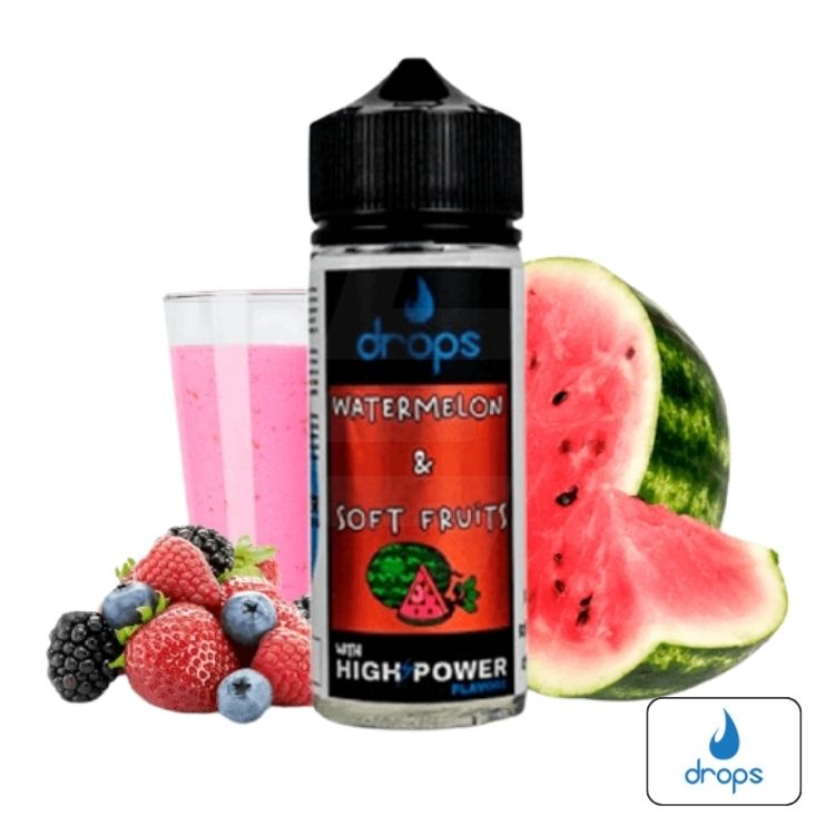 Es un aroma concentrado Longfill con sabor a sandía fresca y granizado de frutos del bosque, elaborado por Drops Bar. Su formato de 40ml en un bote de 120ml permite la mezcla con base y nicotina según las preferencias del usuario.