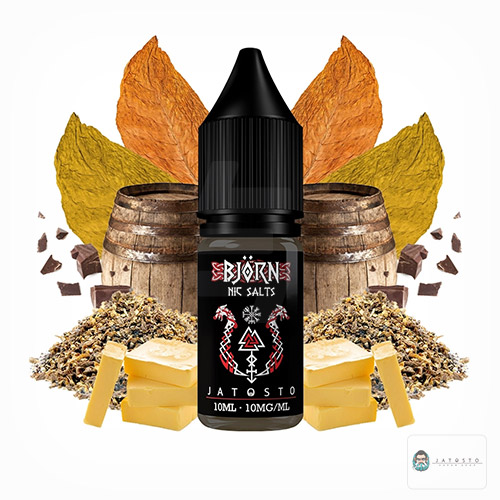 Jatosto Sales Björn. Björn nos presenta una exquisita combinación de tabacos rubios, añejados en barricas auténticas, en un equilibrio perfecto con un sutil toque de mantequilla y cacao que hace de esta mezcla una verdadera obra de arte. Ahora en formato sales de nicotina.