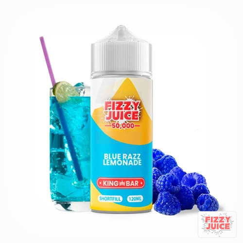 Fizzy Juice King Bar Blue Razz Lemonade. Experimenta la perfecta fusión entre frambuesas azules y limonada, creando una sensación audaz y refrescante que deleitará tus sentidos en cada bocanada.