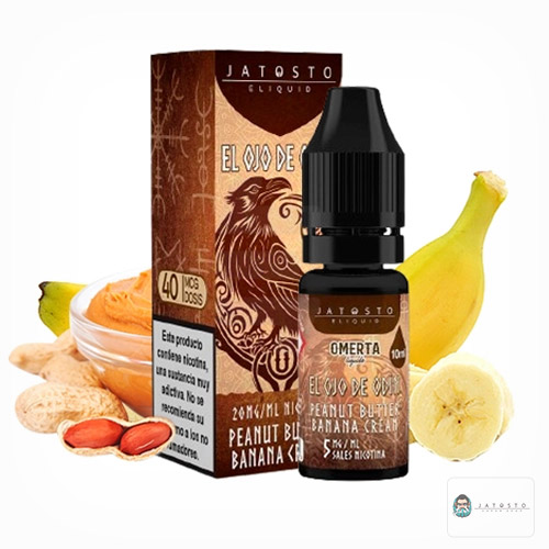 Jatosto Salts El Ojo de Odín 10ml. Sabor crema de cacahuete y plátano. Deliciosa crema de cacahuete al más puro estilo americano mezclado con de plátano maduro. Un manjar para el paladar.