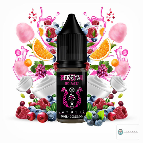 Jatosto Sales Freya. ¡Este E-liquid es el néctar de los dioses! La diosa Freya nos deleita con una exquisita fusión de frutas del bosque, combinada con una crema deliciosa que te llevará en un viaje mágico hacia el templo divino. Ahora en formato sales de nicotina.