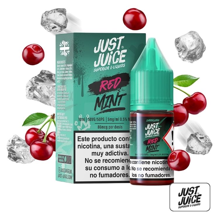 Las Sales Mint Range Salts Red 10ml – Just Juice están disponibles en concentraciones de 5mg, 10mg y 20mg, para adaptarse a diferentes necesidades de nicotina.